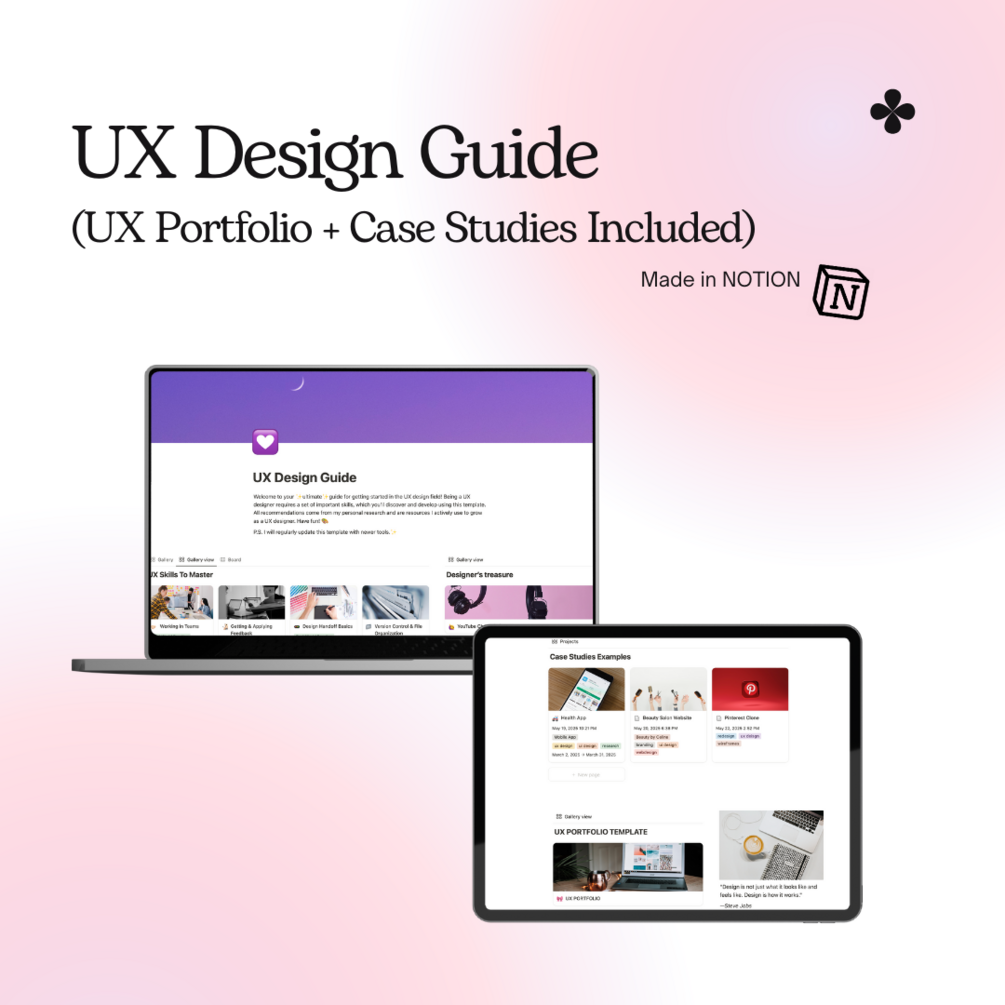 A beginner-friendly UX design guide that helps you kickstart your career, build a strong portfolio, and present your work like a pro.